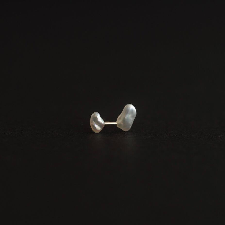 ケシ真珠と呼ばれる愛らしい様々な形状をした真珠の中で、特に極小のものを2粒選び取り、リズム感のある配置で使用した片耳ピアスです。