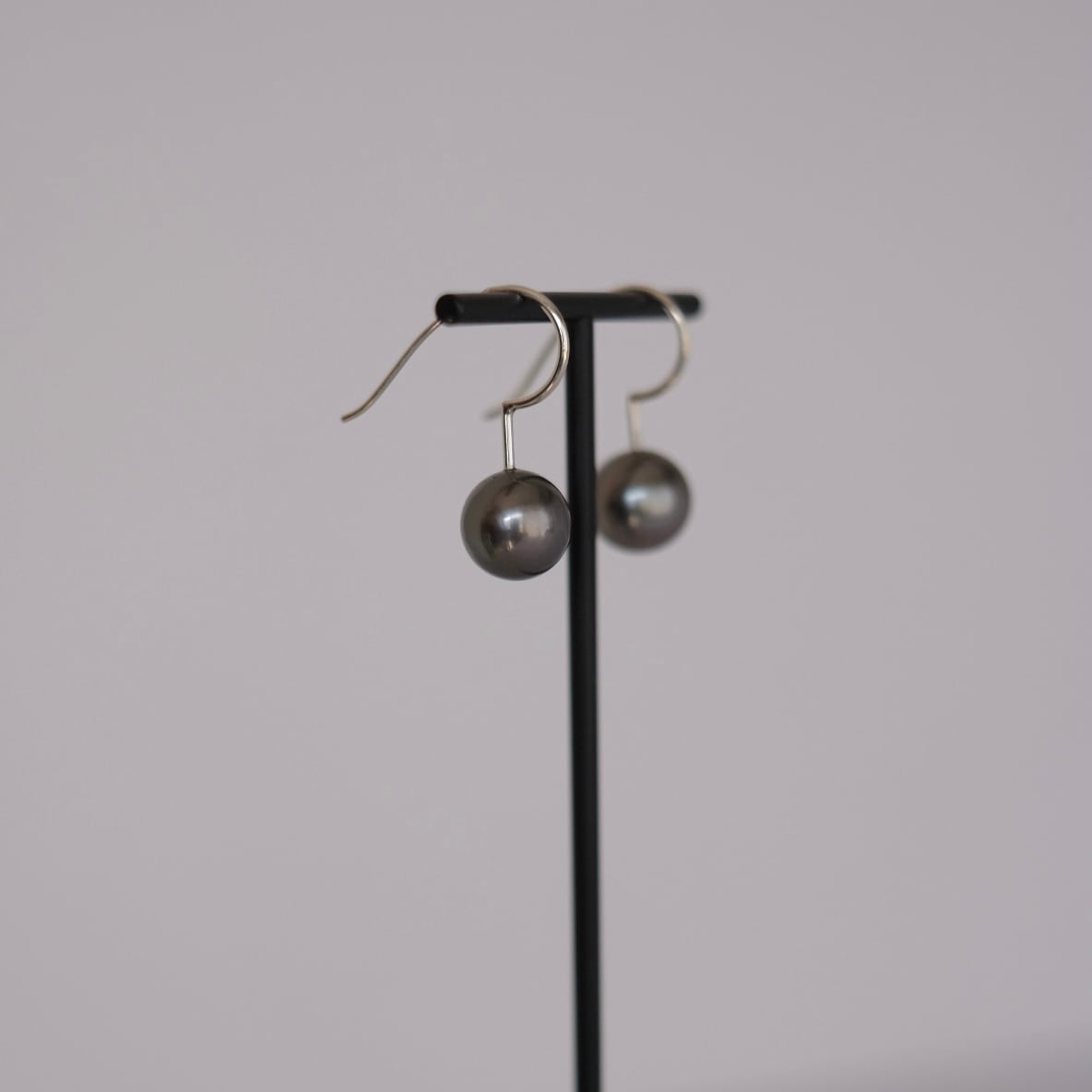 ほんのりあたたかみを感じるようなグレーカラーで大粒の黒蝶真珠。
